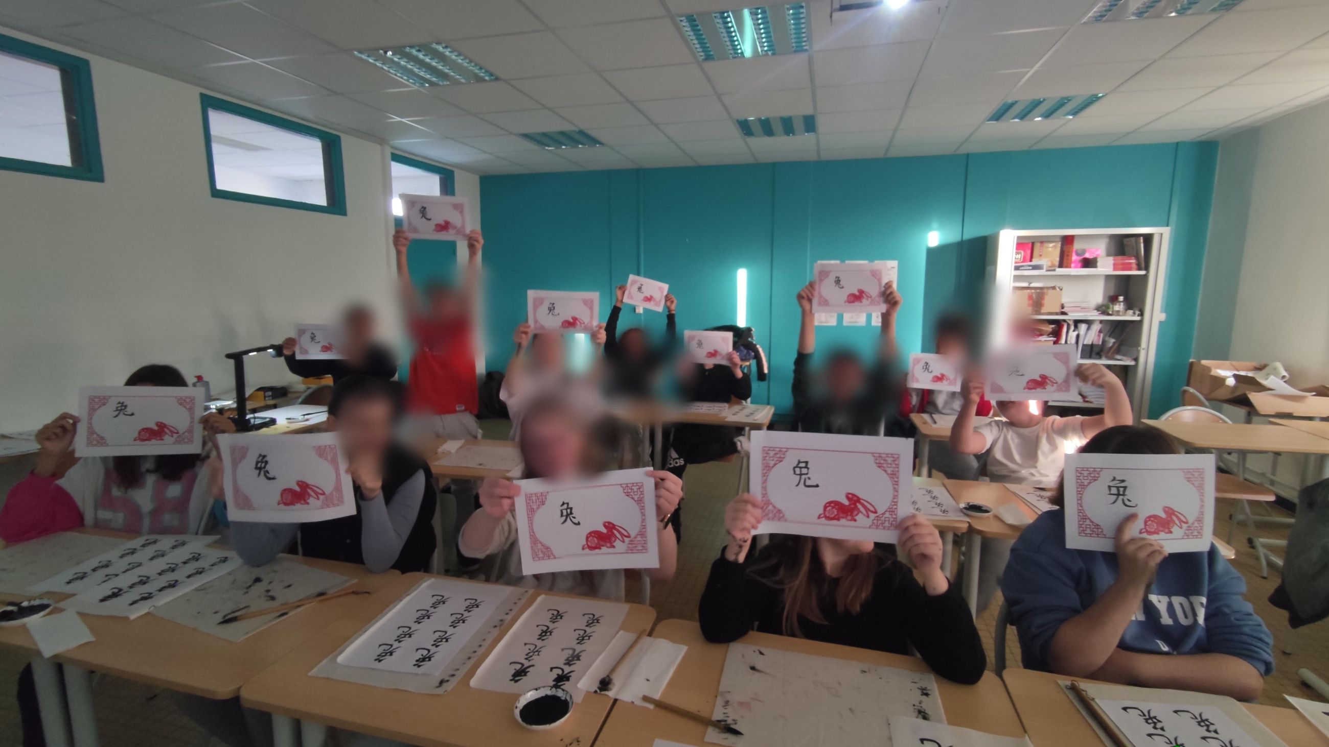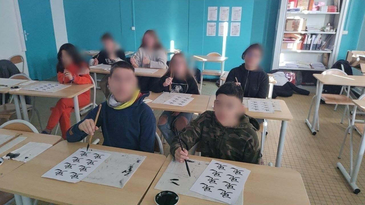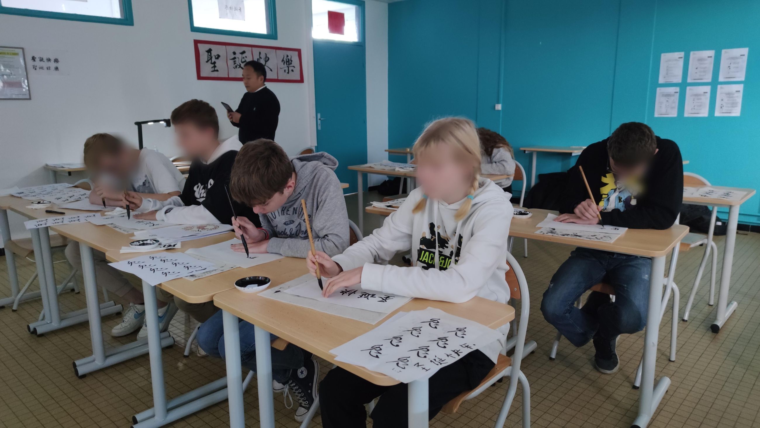 En décembre, avec Mme Synave, enseignante de chinois , les élèves sinisants du notre collège ont participé à un Atelier de calligraphie chinoise.